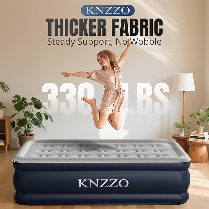 - Upgraded waterproof flocked fabric – This air mattress features a soft, skin-friendly surface with reinforced abrasion resistance. The durable treatment protects against daily wear, spills, and rough handling, making it ideal for inflatable mattresses used indoors or outdoors. No leaks, no peeling—just long-lasting comfort.