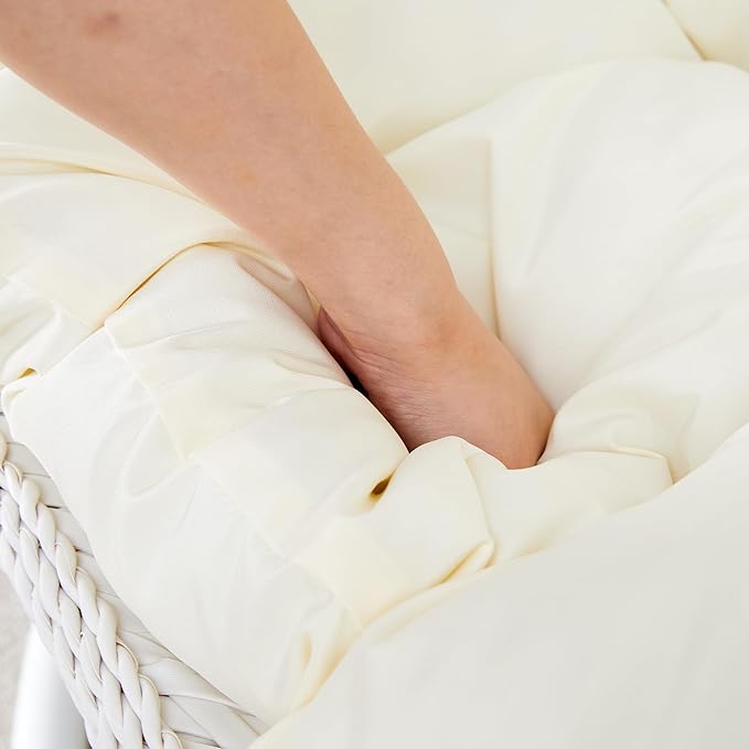 JUFU Egg Swing Chair with Stand,Hanging Egg Chair with Cushions and Pillow,Heavy Duty Lounge White Basket Chair,Indoor Outdoor Patio Porch Lounge Hammock Chair for Patio Balcony Backyard,Bedrooms