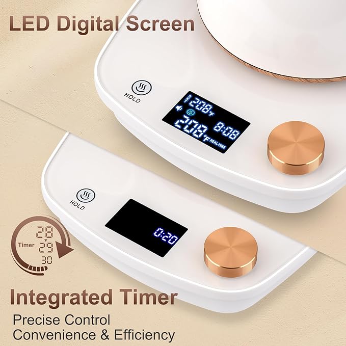 - Electric Kettle For Coffee and Tea : This electric kettle allows you to select the ideal temperature from 104 to 212°F. The intelligent temperature control system helps the water under different temerature for flawless pour-over coffee and tea brewing.