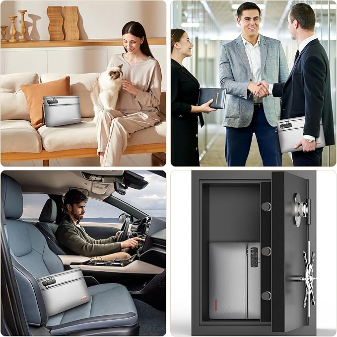- DUAL-CONTROL CONVENIENCE: Compared with other products on the market, we use this TSA-approved lock features dual buttons,secure two zippers or compartments with one code.Set once,protect everywhere.It is very important to follow the instructions after receiving the fireproof waterproof document bag(TIP:No physical keys are included or required)