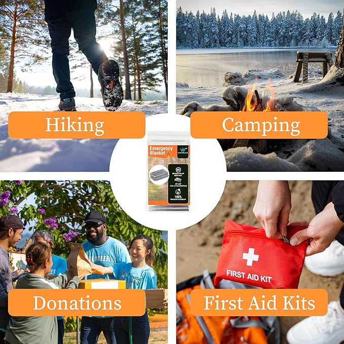 - COMPACT & LIGHTWEIGHT : Each blanket in this 50-pack comes individually sealed, making them easy to distribute to groups or emergency response situations. Whether you're organizing disaster relief efforts, supporting homeless outreach programs, or preparing for school safety drills, having a clean, hygienic, and ready-to-use thermal blanket is perfect for everyone. The bulk quantity ensures you’re well equipped for most scenarios.