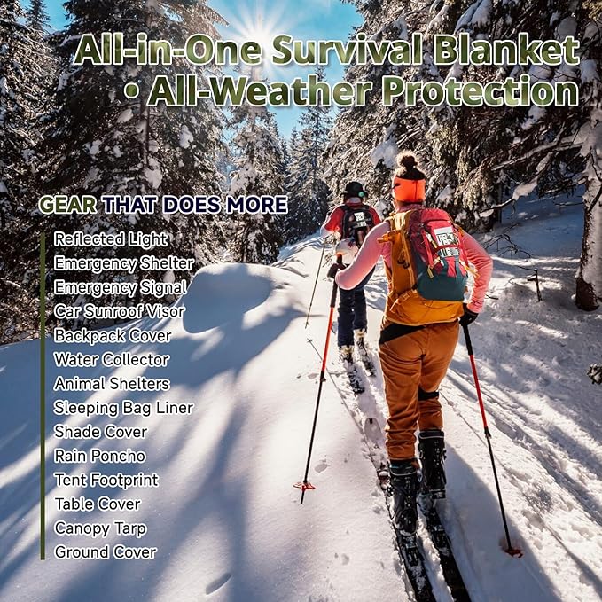 - VERSATILE SURVIVAL SUPPLIES: Serves as a shelter, poncho, shade, ground cover, or emergency signal, enhanced by its oversized, reusable tear-resistant build. Suitable for marathons, camping, hiking, earthquake disasters, or first aid, this durable solution ensures long-term safety in unpredictable situations