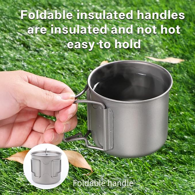 - Four in One Versatile Equipment - Combining 1*750ml covered titanium backpack kettle, 1*titanium knife, 1*titanium spoon, and 1*mesh bag, this titanium camping cup set is the best choice for your travels.