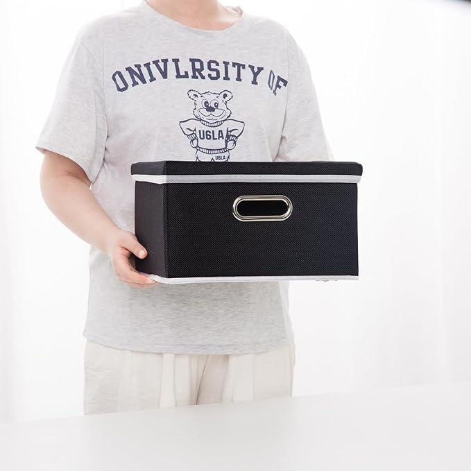 PRANDOM Storage Boxes with Lids [3-Pack] Fabric Collapsible Storage Bins Organizer Containers Baskets Cube with Cover for Home Bedroom Closet Office Nursery Black(11.4X8.6X6.7
