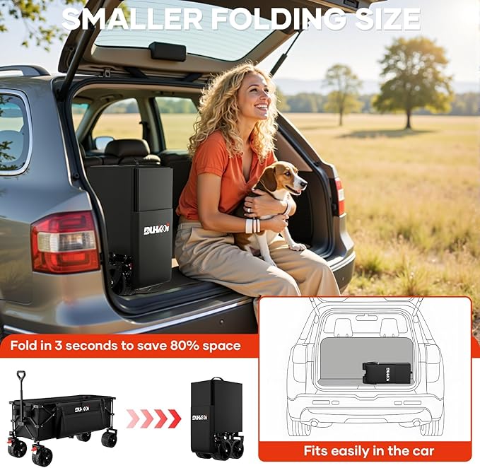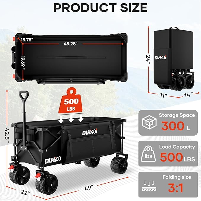 - Heavy Duty & Durable: Built with a reinforced steel frame and 600D Oxford fabric, wagon cart foldable can handle up to 500lb while remaining lightweight and easy to maneuver. The DUHKOI Heavy Duty wagon is tough enough for heavy loads, yet compact for everyday errands.