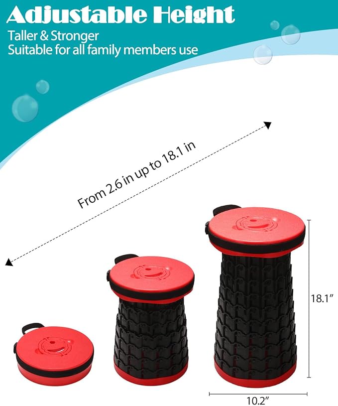 - MULTI-SCENARIO PORTABLE STOOL FOR ADULTS – Ideal collapsible stools for adults at camping trips, sports events, concerts, long queues, garden parties, RV travels, and as an temporary seat.