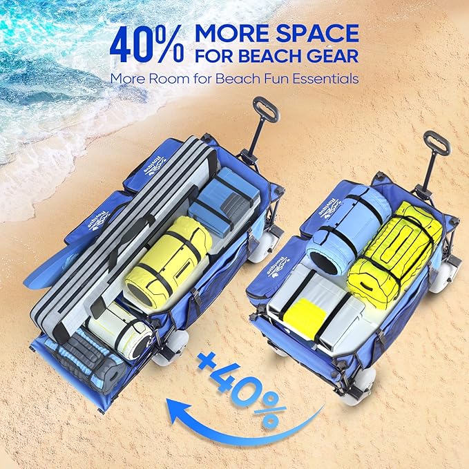 - 260L Large Storage – 40% More Space: With an expanded capacity of 260 liters—40% more than standard wagons—this collapsible wagon accommodates all your essentials, from beach gear to camping equipment. Its versatility makes it ideal as a shopping cart, utility wagon, garden cart, or dog wagon.