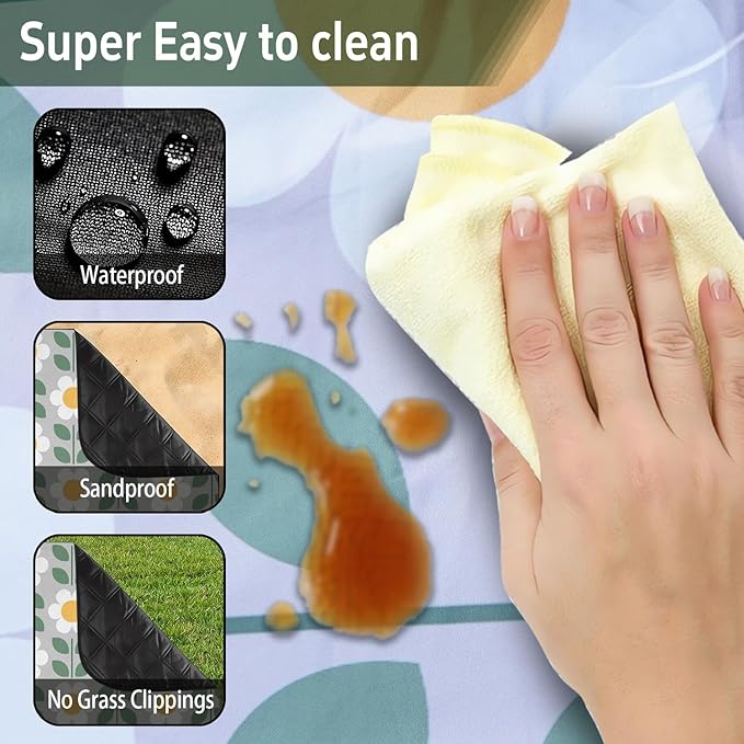- Waterproof and Sandproof: Crafted with a special waterproof and sandproof surface, this blanket protects against spills, stains, and the discomfort of damp grass or sandy beaches, ensuring a clean and comfortable experience.