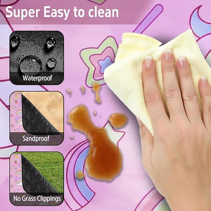 Extra Large Picnic Outdoor Blanket 60''x80'' Pink Unicorn Waterproof and Sandproof Picnic Mat for Beach Foldable Camping Accessories for Grass Lawn Park