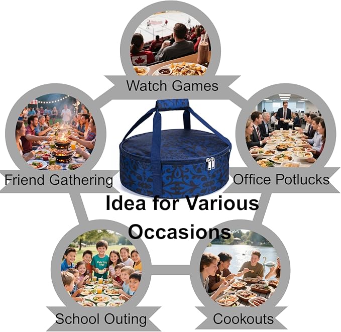 - 【Durable Fixing Straps Design 】 Featuring afixing straps and sturdy construction, this round casserole carrier prevents spills, making it ideal for transporting soups, sauces, and other liquids without worry