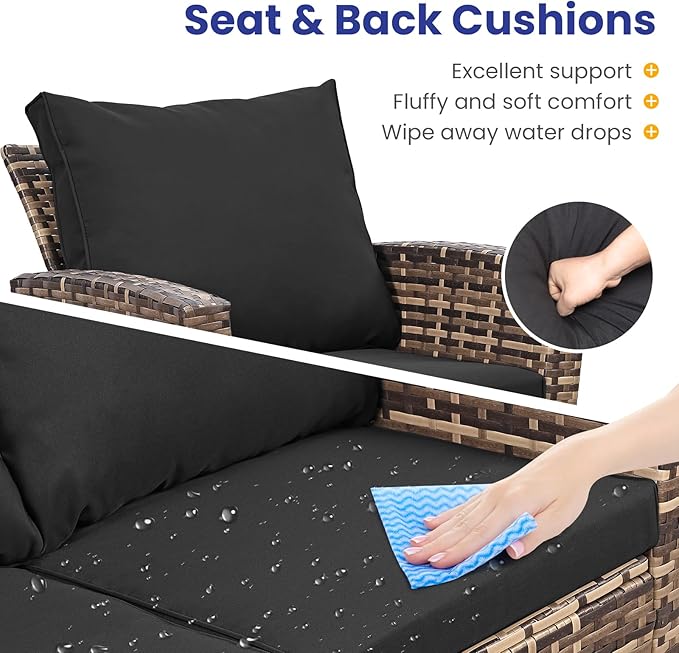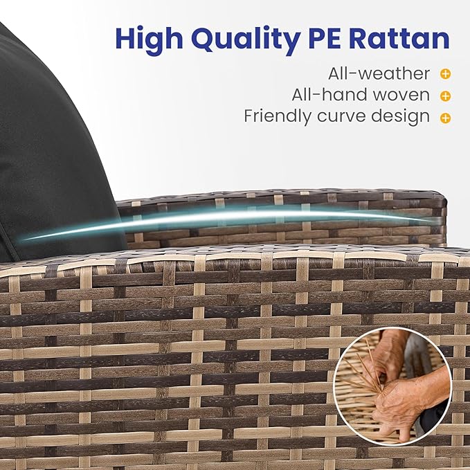 - Durable & Strength Structure:The patio conversation set is made of thick, high-quality rattan material that is weather-resistant, sturdy, and crack-resistant. This patio furniture set also features a powder-coated steel frame as its core for extra strength. Each seat can hold up to 310 lbs
