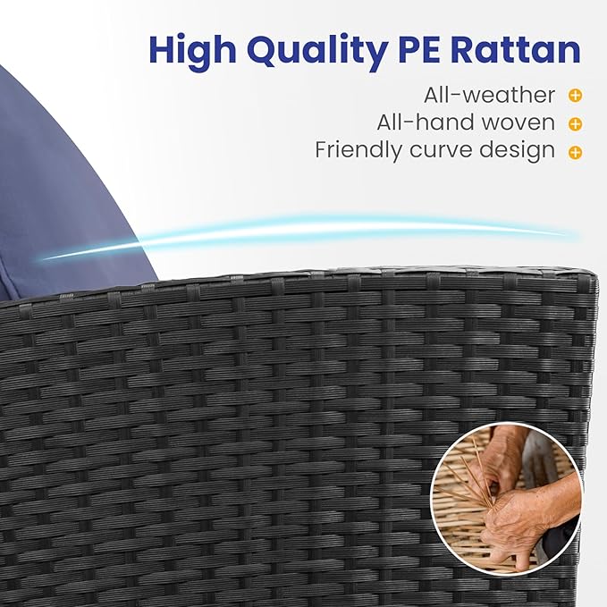 - Durable & Strength Structure:The patio conversation set is made of thick, high-quality rattan material that is weather-resistant, sturdy, and crack-resistant. This patio furniture set also features a powder-coated steel frame as its core for extra strength. Each seat can hold up to 310 lbs