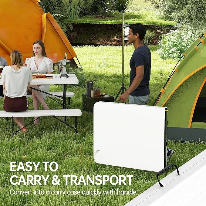 Real Relax 6' Picnic Table with 2 Benches, 3 Piece White Portable HDPE Folding Camping Table and Benches for Courtyard, Garden, Outdoor Leisure, Party