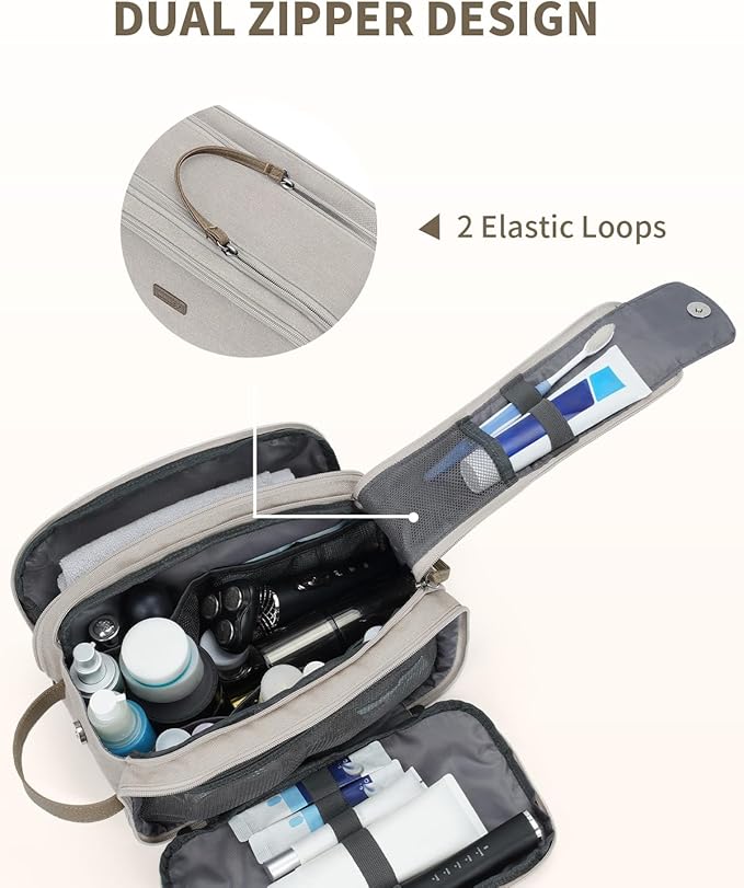 - 【Stay Organized on the Go】: Available in two sizes, the Medium (9.4''L x 5.9''H x 5.5''W ) and Large (11.5''L x 6.3''H x 6.5''W ) toiletry bags fit all your travel essentials. The Medium size is perfect for individual use, while the Large size offers ample space to hold toiletries for the whole family. The mesh pockets keep bottles upright, and two elastic loops in the lid help secure items like toothbrushes or razors.