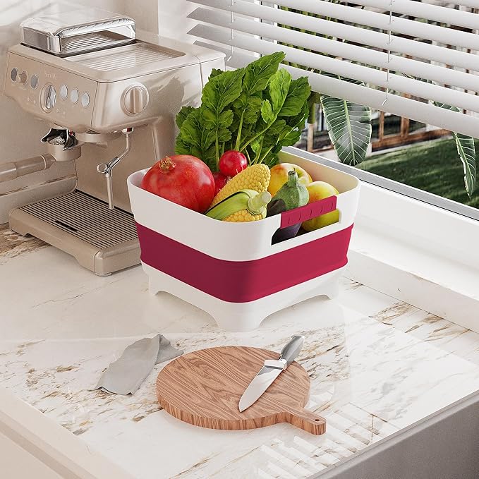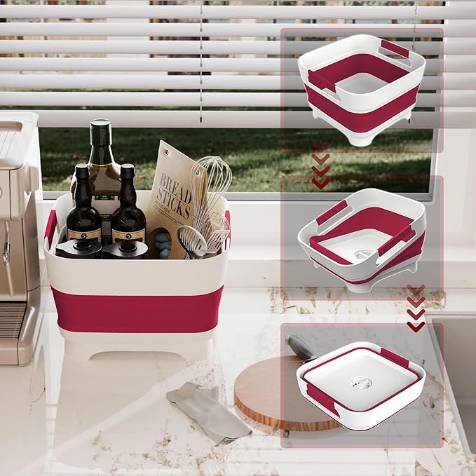 - 【Collapsible & Ultra-Durable】The dish basin maintains its space-saving foldable design, allowing you to adjust its size as needed and collapse it easily for storage, saving precious space. Dimensions remain the same—expanded size: 12.4 x 12 x 7.9(h) inches, collapsed: 2.8 inches—with an updated, sturdier build using superior plastics and silicone.