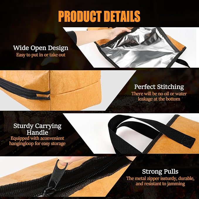 - Portable & Leakproof Design: Crafted for convenience, this smoker accessories bag is lightweight, foldable, and highly portable, making it perfect for BBQs, camping, and outdoor events. The leakproof design ensures no oils or liquids seep through, and the durable zipper keeps your meats secure, preventing spills during storage or transport.
