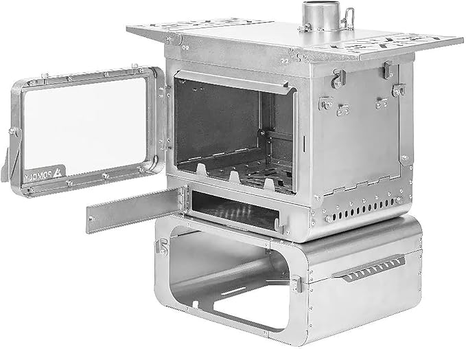 - 【High Quality Material】Camping tent stove is made of titanium material and is lightweight. The melting point of POMOLY LumberJack is 1668℃. The stove is not easy to deform when burning, is resistant to high temperatures, and has good thermal conductivity.