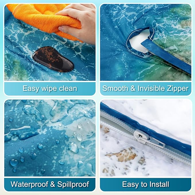 - Round Fitted Tablecloth Set: the package includes 2 sea outdoor round tablecloths, each with an umbrella hole and a hidden zipper; The patio table cover has an elastic band around it so it can be firmly fixed on the table without sliding