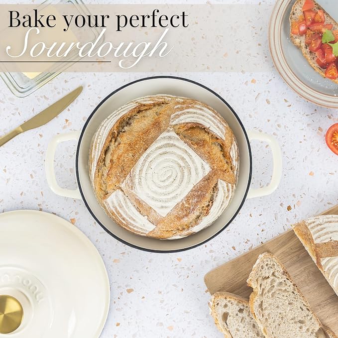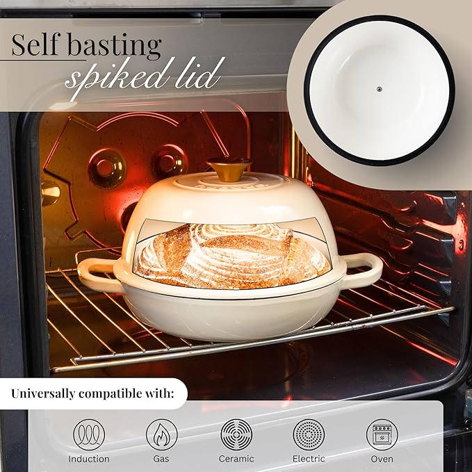 - PERFECT FOR BREAD BAKING: Our enamelled bread pot with lid is designed to create the ideal environment for baking, ensuring even heat distribution throughout. The included lid traps steam, giving your bread a moist crumb and delightful texture. Achieve a delectable golden crust every time!