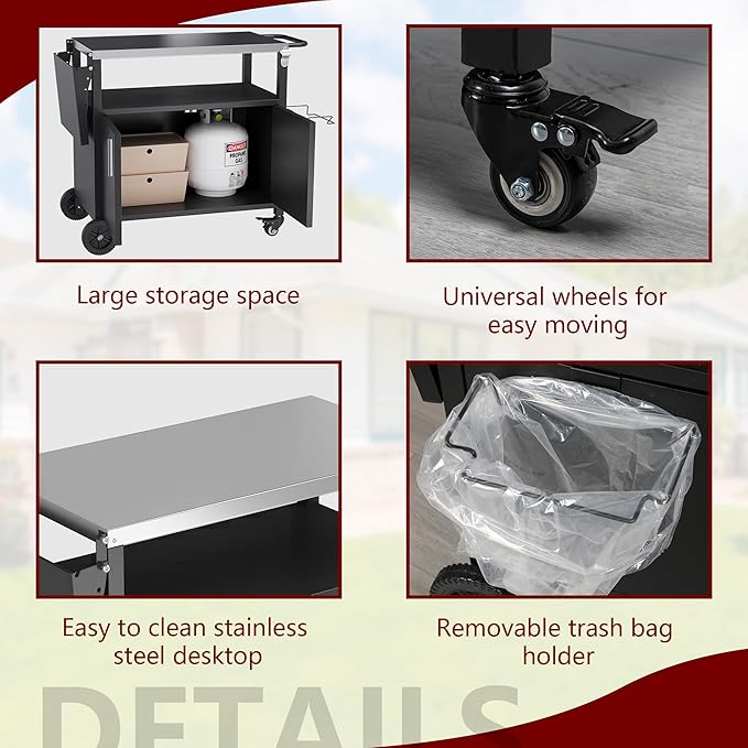- Versatile Grill Tables for Outside: More than just a grill cart, this versatile unit doubles as an outdoor bar, prep table, mobile kitchen island, and more. Movable Worktable can be applied to patio, garden, kitchen. It will be a great addition to your family.