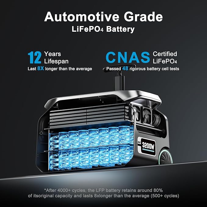 - 【Top-grade LiFePO4 Battery】Portable electric generator with solar panel built-in battery uses a lithium iron phosphate battery (LiFePO4) that lasts 15 years with over 4000 charge/discharge cycles. It lasts 7 times longer than conventional batteries and costs less. IEE solar generators for home use also has a battery management system (BMS) to manage battery cell voltage and temperature.