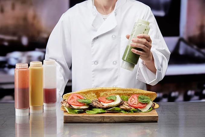 - PREMIUM DISPENSERS FOR CONDIMENTS & DRESSINGS - Keep your favorite condiments organized and accessible with our high-quality condiment bottles. These also work great as dressing containers. Perfect for ketchup, mustard, spicy mayo, honey, and salad dressings, these containers come with secure lids to prevent leaks and spills. They also work great for sauces like soy, ranch, or BBQ. Ideal for both kitchen use and on-the-go meals, our condiment containers with lids are a must-have for restaurants, picnics, or meal prep.