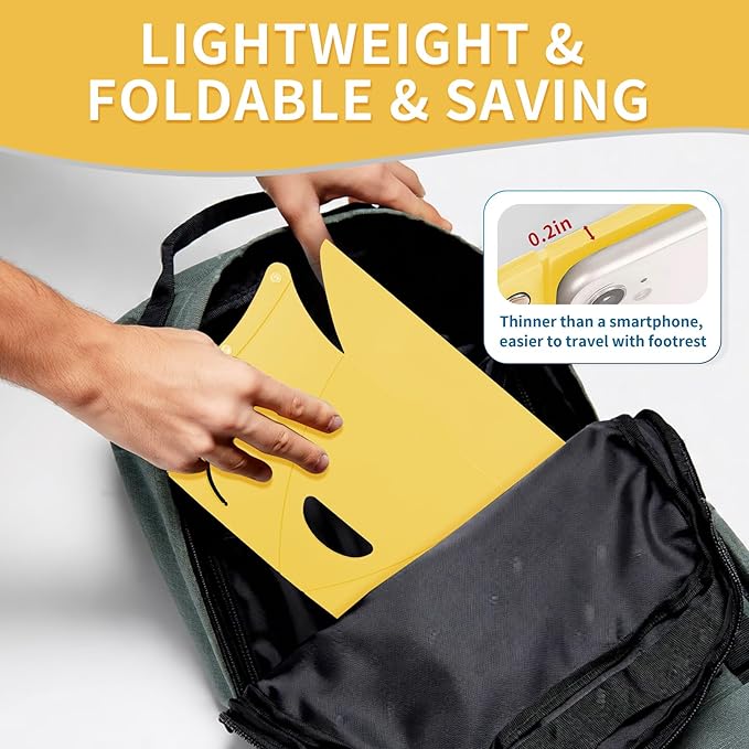 Travel Foot Rest for Airplane & Office - Portable Under Desk Foot Stool, Relieves Back & Knee Pain, Comfort for Long Flights, Cars, Subways & Trains (Yellow)