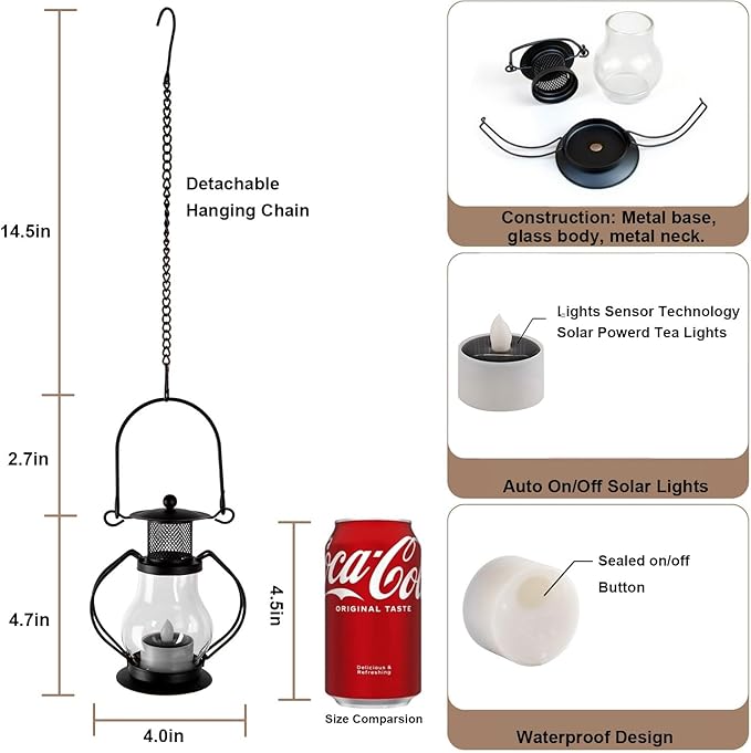 - 【Vintage Style Metal Lanterns】: Features charming vintage aesthetics with mini metal lantern housings, adding classic and elegant ambiance to any outdoor space.