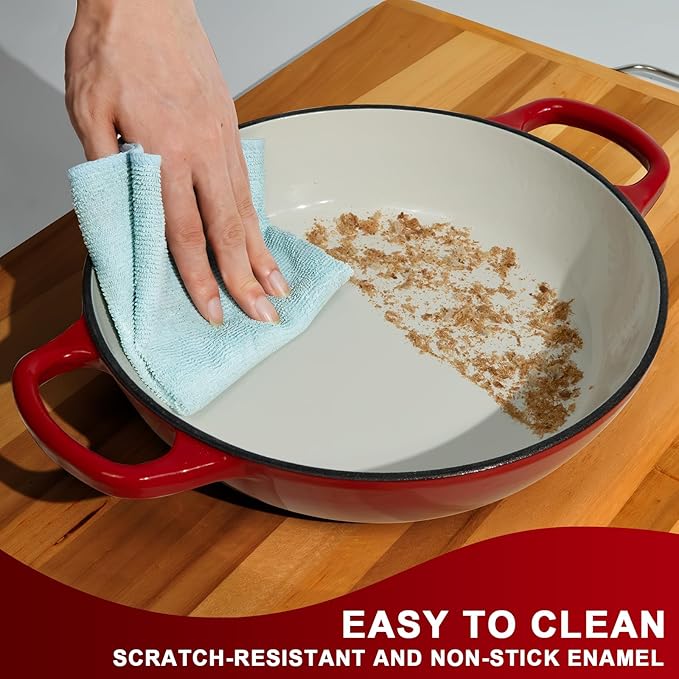 - VERSATILE CHEF-GRADE PERFORMANCE: Beyond bread, Roast, braise, or bake with confidence. Oven-safe to 500°F and compatible with stovetops (gas, induction, electric). Meanwhile, the high-quality enamel coating prevents rust, neutralizes seasoning residues, and resists sticking. It's easy to clean.