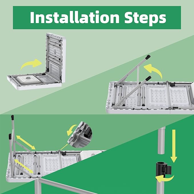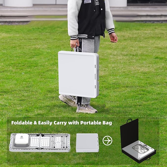 - 【Easy Assembly】-No further tools needed, all included in one box. Set it up in less than 10 minutes. After use, fold the table in half, put it into the carry bag, easily take it anywhere