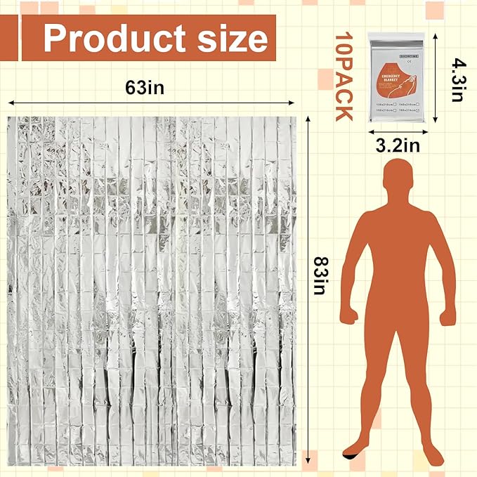 - ๐ฆใ10-Pack Value Setใ Bulk emergency kit with individually sealed blankets (63"x83" each) Ideal for family preparedness or group outdoor activities