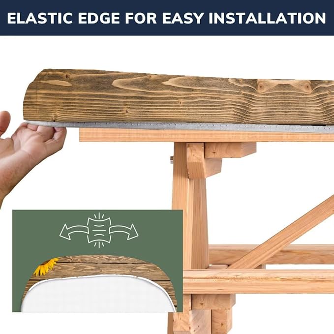 - [Elastic Edging & Windproof Design] Features all-around elastic hemming on both fitted picnic table cover and bench protectors for quick installation. Special tension design keeps covers firmly in place during windy conditions, protecting your outdoor furniture from weather elements.