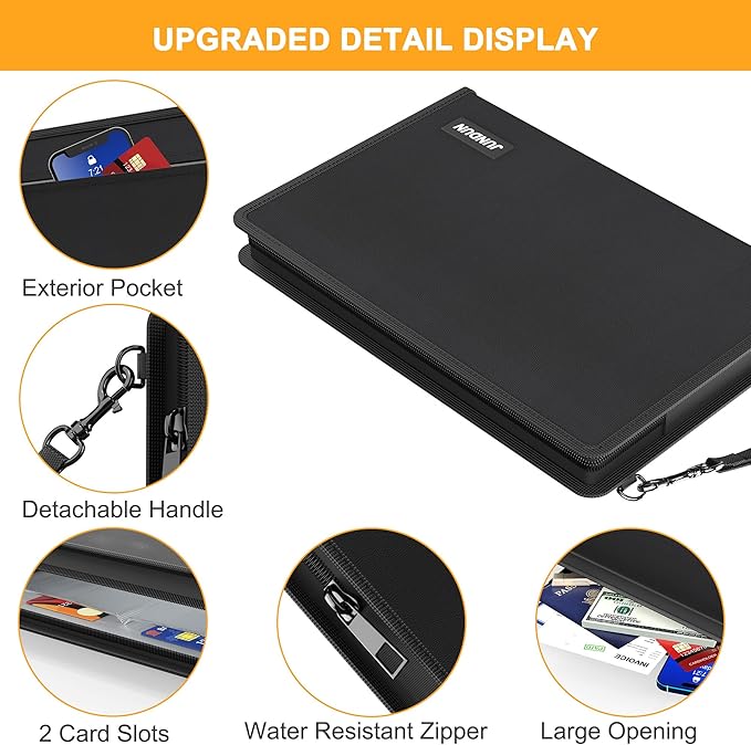 JUNDUN 5200℉ Fireproof Document Bag,13.5”x 9.6” Water Resistant and Fireproof Money Bag with Zipper,Home Fire Safe Storage Bag Pouch for Letter Size Documents,Cash,Passport and Cards