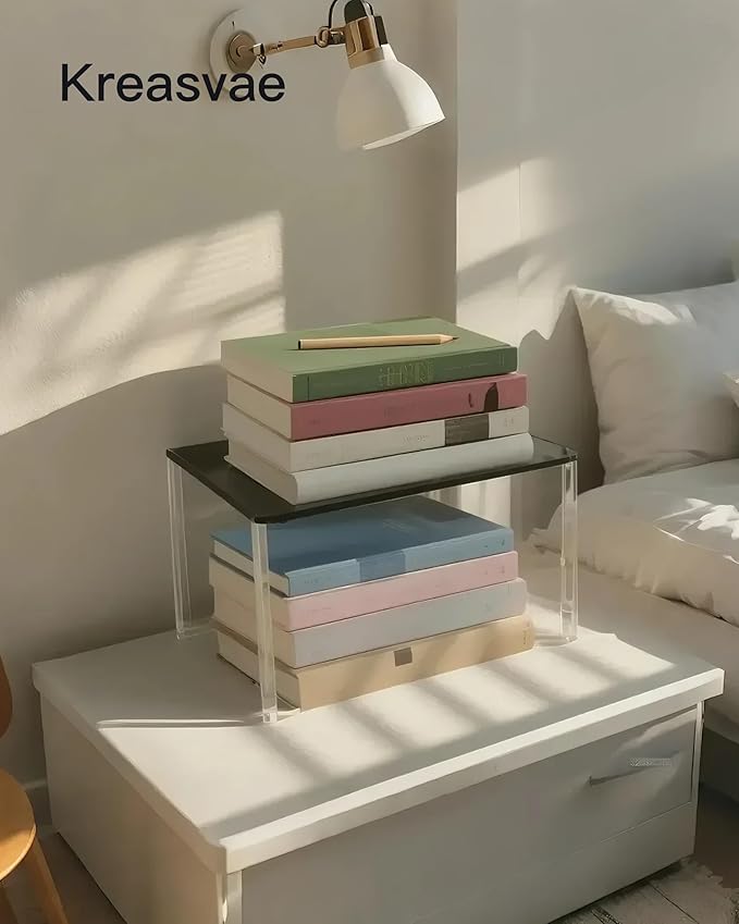 - Detailed & Safe by Design | Smooth & Non-Slip We focus on the details that matter. Every edge of this acrylic shelf riser is finely polished to be smooth and safe to the touch. For your convenience and to protect your surfaces, each leg comes with a pre-installed non-slip pad. This thoughtful feature saves you time and prevents scratches on your delicate countertops, whether it's a wooden desk or a bathroom vanity shelf, ensuring your furniture stays protected