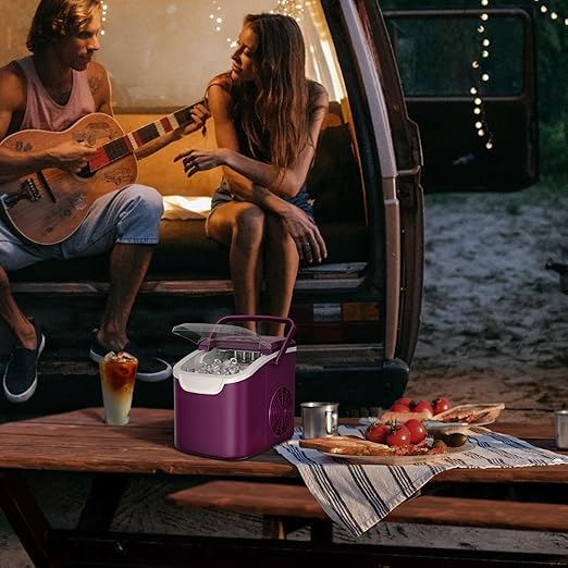 - Road Trip-Ready Compactness:Fits anywhere with 8.66"x10.39"x11.22" footprint – Throw a countertop ice maker in your RV, tailgate setup, or beach cabana. Your ultimate hydration sidekick for adventures.