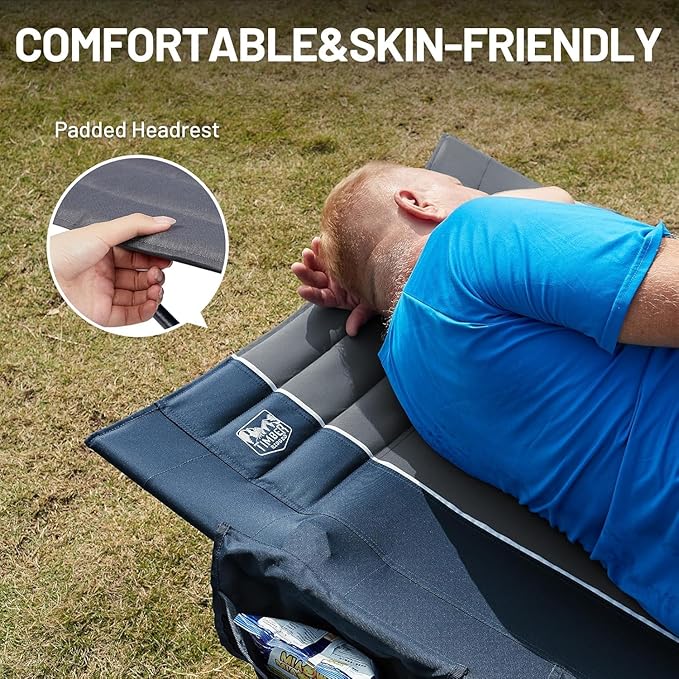 - Comfortable and Breathable: Wide camping cot with padded headrest offers more support when sleeping and the breathable fabric making the camping cots for adults most comfortable.