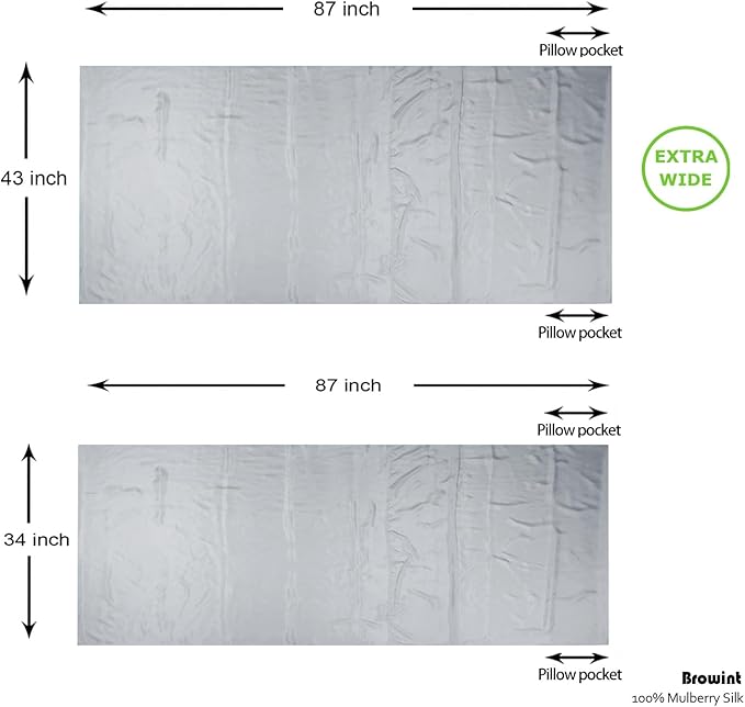 BROWINT Silk Sleeping Bag Liner, Silk Sleep Sack, Extra Wide 87"x43", Lightweight Travel Sheet for Hotels, More Colors for Option, Reinforced Gussets