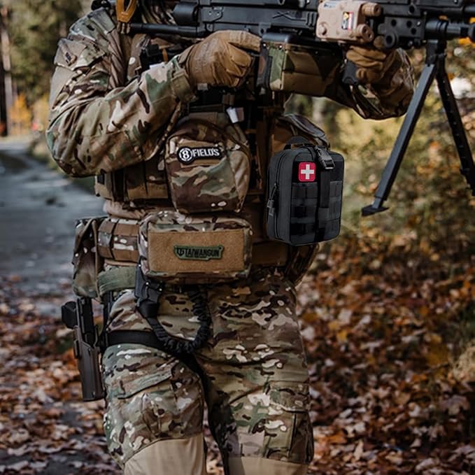 - [Perfect 'Glovebox-Sized' Triage Kit] - As an Everyday Carry pouch, this pouch is the perfect size to attach on a tactical vest, combat belt, or a rucksack with the MOLLE system, while providing an easy access to all the essentials.I love the slim design while being able to hold a solid amount of 1st aid items while still having room to add more items of desired