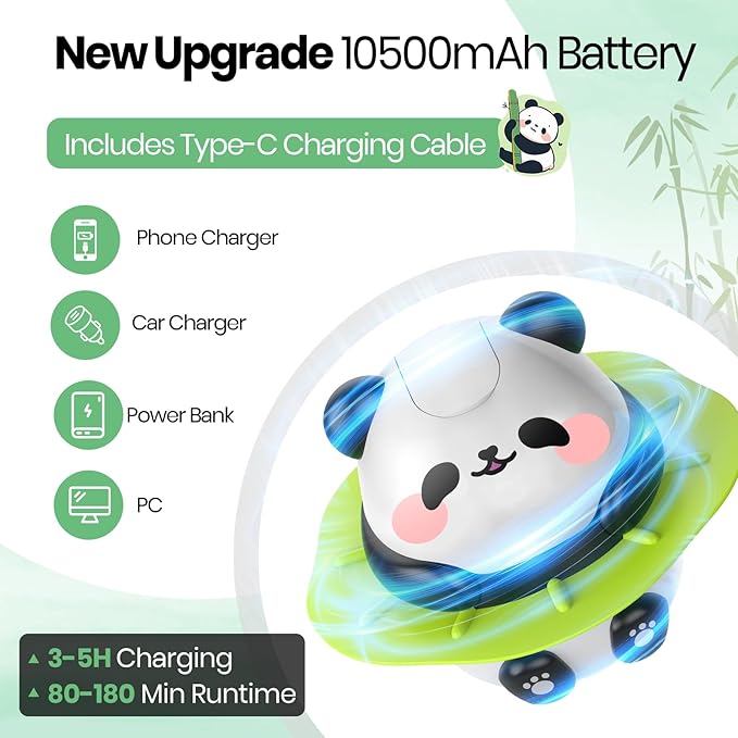 - 【Charge Once, Shower for Days】With a massive 10,500mAh battery, this little panda camping shower keeps going longer. No more rationing water—spray freely at the beach, campsite, or even during a cross-country road trip. Plus, its IPX7 waterproof rating laughs in the face of rain, splashes, and accidental dunks.