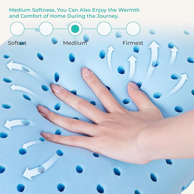 Travel Pillow Memory Foam Pillows, Camping Pillow-Compressible Medium Firm, Breathable Cover, Ideal Backpacking Hiking, Bed Pillows, Airplane and Car (Purple, M)