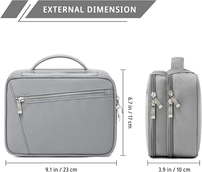mygreen Electronics Travel Organizer, Watreproof Electronic Accessories Case Portable Double Layer Cable Storage Bag for Cord, Charger, Flash Drive, Phone, Ipad Mini, SD Card, Gifts for Him Grey