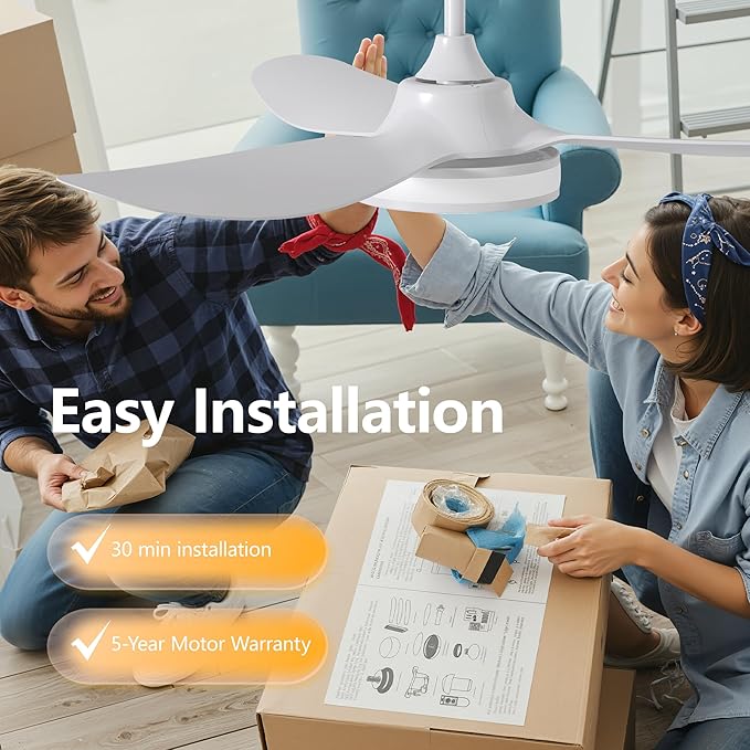- ๐กModern Minimalist Look for Any Room Finished in elegant matte white with sleek 3-blade styling, this 42-inch fan adds a touch of modern flair to bedrooms, living rooms, kitchens, or apartments.