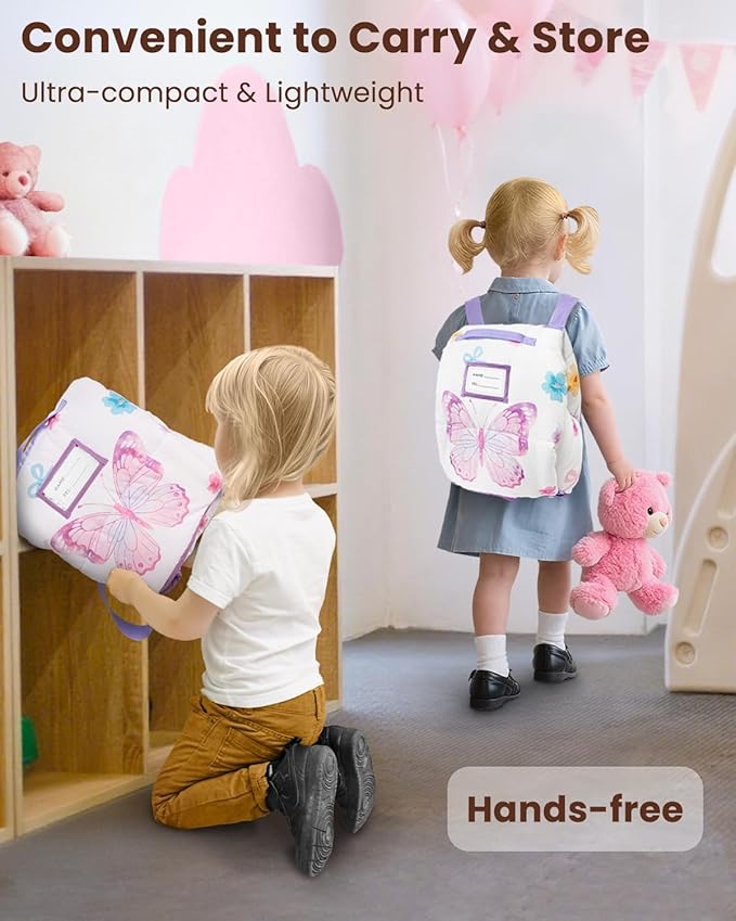 - Easy to Carry on Your Back: The nap mat is compact, easy to carry, and perfect for on-the-go naps — while keeping little hands free. Wide straps add comfort and lasting support