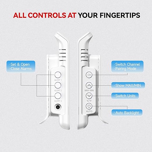 - Automatic Smart Backlight: Thanks to the built-in light sensor, this thermometer automatically adjusts the backlight depending on the ambient lighting. Whether it's bright daylight or night, you'll always have clear visibility. You can also manually turn the backlight on or off based on your preference.