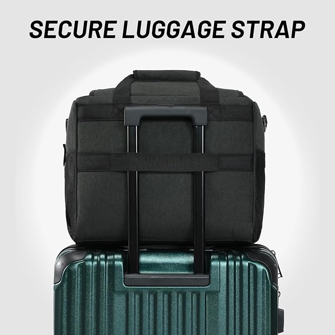 - Multifunctional Design: Back trolley strap can be directly put on the luggage trolley; side bottle opener for drinks; expandable cup holder; front zipper pocket and dual mesh pockets for organized essentials.