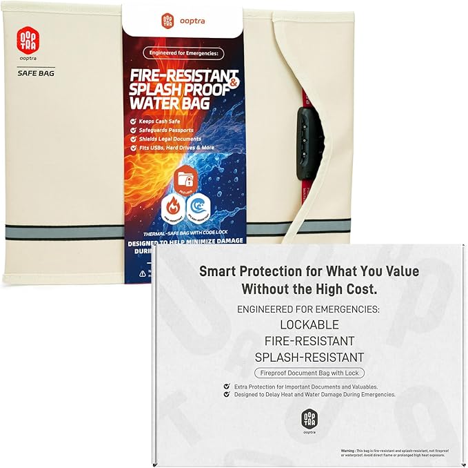 - 【Advanced 11-Layer Fireproof, Waterproof & Reflective Design】 Built with a new 11-layer fire-resistant structure and silicone-coated fiberglass, each bag offers enhanced protection—resisting heat up to 4200°F (short-term) while keeping out water, moisture, and smoke. The waterproof zipper further seals your valuables, and a full-length reflective strip ensures visibility in low light or emergencies.