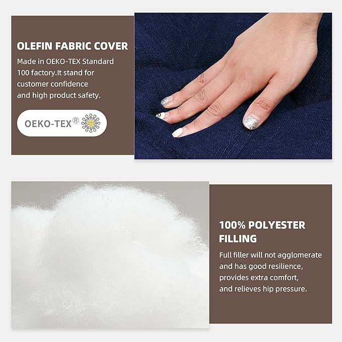 - Comfortable & Durable: RACE LEAF cushions are made of Olefin fabric cover and 100% polyester fiber filling. The cover fabric has been treated with solution-dyed to resist fading, light fastness can withstand up to 1,500 hours and still not fade. The filling is 100% polyester, will not agglomerate has good resilience, provides extra comfort, and relieves hip pressure