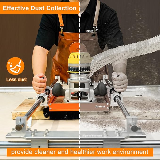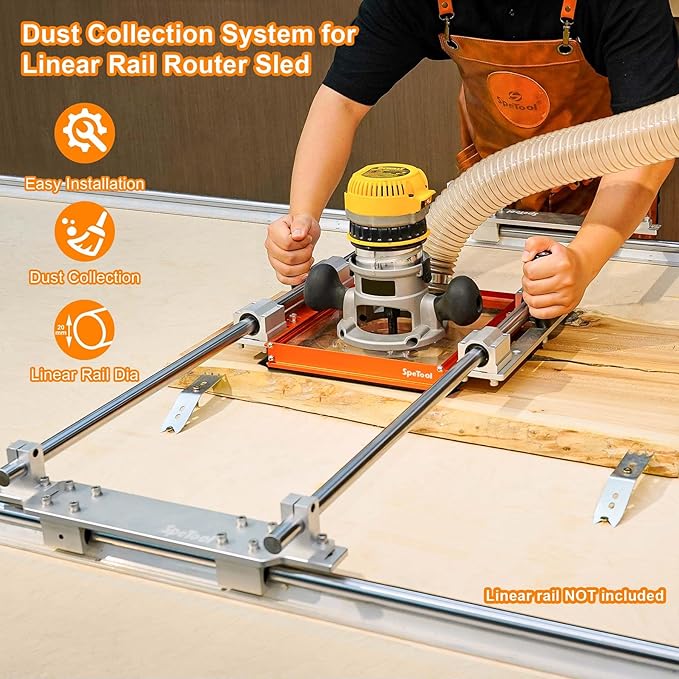 SpeTool Linear Rail Router Sled Slide Connector with Dust Collection, Fit for SBR20UU and SCS20UU Linear Rails, with Acrylic Router Plate Compatitable with Multiple Routers