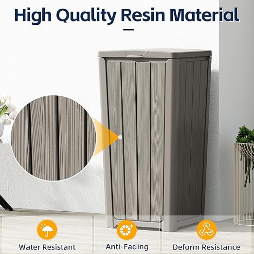 - Waterproof Surface - The outdoor trash can is made of recyclable resin material, which is Waterproof while effectively protecting against UV radiation and corrosion