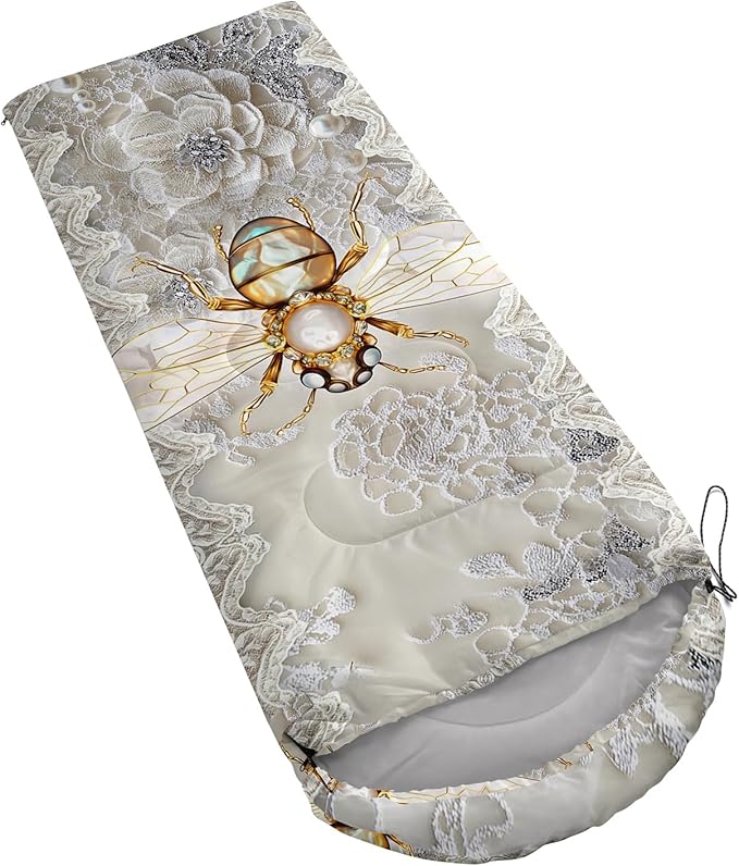 - Unique Bee Design:This Bee pattern sleeping bag is made of 3D digital printing with vibrant colors and patterns,size: 31W x 90L inches,temperature range: 32℉-77℉ (0℃-25℃),it also also have a weather resistant waterproof design to keep you warm and prevent you from any dampness,can be used in 3 seasons